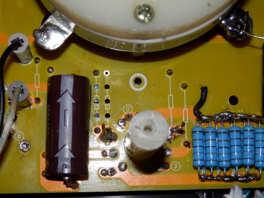 Nell' immagine qui a lato potete vedere delle stranezze , ovvero una bella cippata di resistenze in parallelo ( circa 12 ) che non servono a un bel nulla , per proseguire ai condensatori di accoppiamento dove si sono prodigati ad avvolgere il filo dei condensatori stessi non capendo che così si crea un' induttanza ...per la serie... che sarà mai l' induttanza parassita in un condensatore chiamata ESL ?? e come aumentarla ignorantemente e inutilmente...