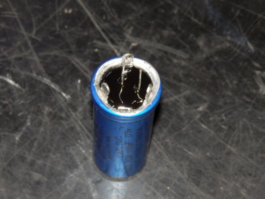 Il condensatore di alimentazione era in perdita e i valori di capacità, ESR (Equivalent Series Resistance) e "Q" erano tutti al di fuori delle specifiche, quindi era urgente sostituirlo. Per preservare l'aspetto originale, ho proceduto smontando il vecchio condensatore e, dopo averlo aperto e svuotato, ho inserito un nuovo condensatore all'interno del suo involucro. È importante sottolineare che la parte nera che si può vedere è resina e non colla a caldo (ovviamente, su un amplificatore a valvole...), e per una corretta gestione del componente, consiglio di non immergerlo completamente. Pertanto, per coloro che desiderano replicare l'operazione, suggerisco di riempire al massimo solo il 50% dello spazio interno lasciando libero l'altro 50%.
