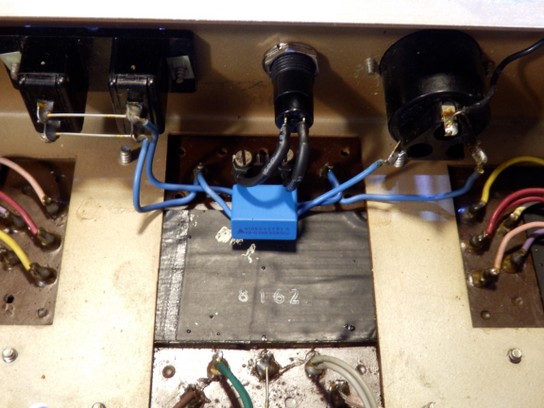 Successivamente è stato aggiunto un interruttore rotondo nel foro di uscita del cavo che si collega al preamplificatore, consentendo di utilizzare l'amplificatore finale singolarmente. L'inserimento di questo interruttore è stato realizzato senza compromettere l'integrità complessiva dell'amplificatore, in quanto ha lo stesso diametro del foro originale. Pertanto, questa modifica è completamente rimovibile in modo semplice. Inoltre, è stata prestata attenzione a interporre un condensatore anti-spike, che protegge il sistema da eventuali "rumori" dovuti dall'interruttore stesso.